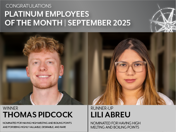 The Platinum of the Month award is a testament to the outstanding individuals who embody the core values of FOCUS. Please congratulate the September 2025 PLATINUM of the month employees! Winner: Thomas Pidcock—Commitment to Team Success Nominated by: Maggie Borrego This past month, Thomas has shown great dedication to KEEPING OUR CLIENTS HAPPY, putting […]